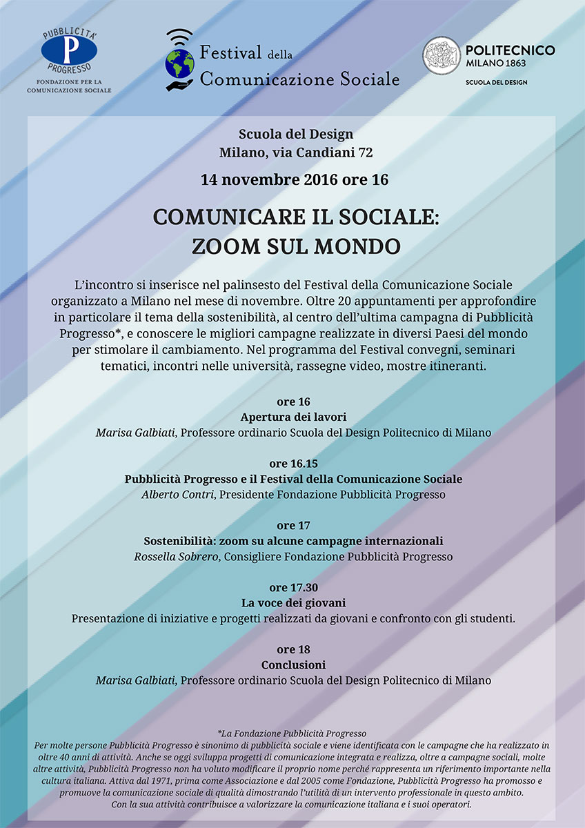 Comunicare il sociale – zoom sul mondo Posted on %e %B %Y by admin Incontro: 14 novembre 2016, ore 16, aula B2.2.10