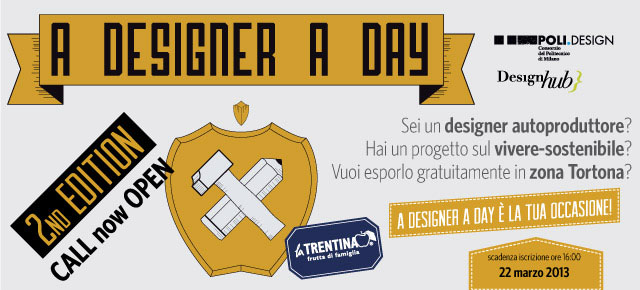 In questa seconda edizione “A designer A day” propone ai giovani progettisti di coniugare i grandi temi dell’”autoproduzione” e del “vivere sostenibile”: la ricerca di nuovi equilibri tra città e campagna (tra cicli sociali e cicli naturali), lo sviluppo di nuovi strumenti e forme di coltivazione e produzione alimentare; la sperimentazione di nuove tecnologie produttive e l’uso di nuovi materiali nel rispetto della sostenibilità ambientale, la messa a punto di nuovi prodotti e servizi di informazione ed educazione alimentare e ambientale (anche pensati per gli utenti più piccoli).