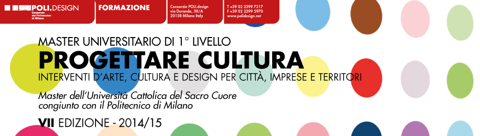 Inizierà a gennaio 2014 la VII edizione di Progettare Cultura, il Master gestito congiuntamente da Università Cattolica – ALMED e Politecnico – POLI.design – Consorzio del Politecnico di Milano, dedicato alla progettazione di interventi d’arte, cultura e design per città, imprese e territori.