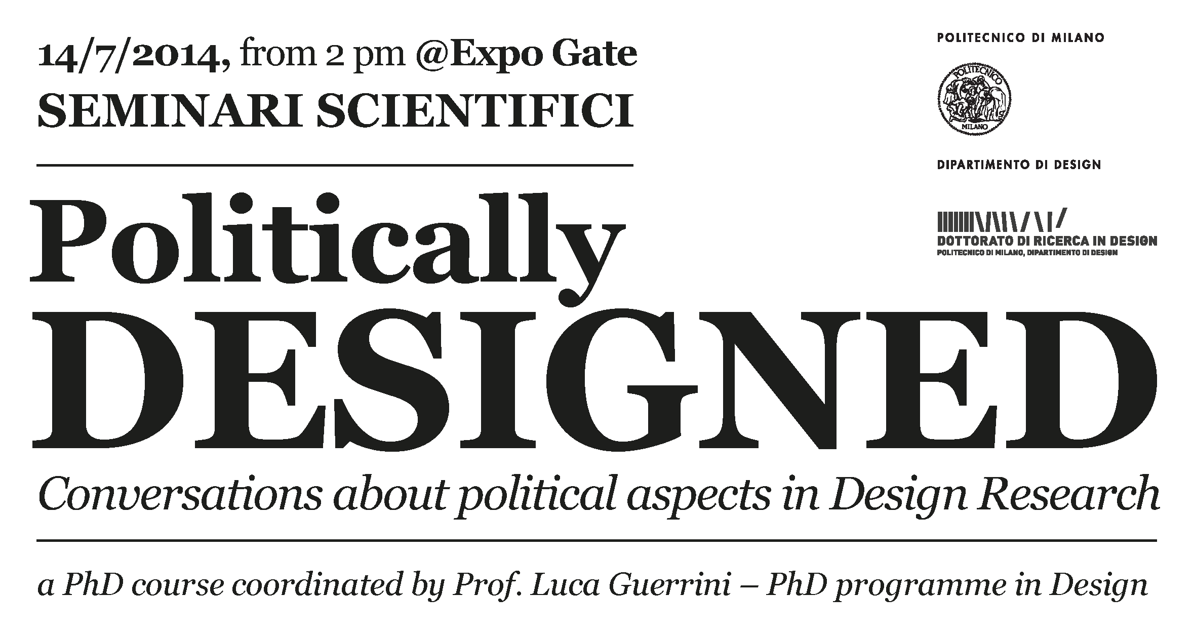 Si rinnova l’appuntamento con i Seminari Tematici della Scuola di Dottorato di Ricerca in Design, quest’anno sul tema “Politically designed – Conversations about political aspects in Design Research”.