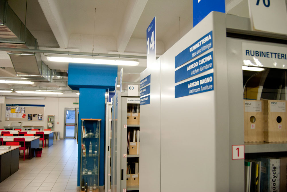 The lab selects the most interesting documents for its users, according to a criterion that takes various elements into account: historical importance in project culture; innovative and technological interest; trendsetters; affiliation to associations in the category or industrial districts. It gathers the documentation and classifies it by sector, section and category of products. The legacy thus compounded includes catalogues, samples, company monographs and documents, sector documentation and research dossiers elaborated by students, normative regulations, a small library, official journals of categorial associations, journals addressing experts or published by companies etc. This legacy amounts to around 7,500 documents.