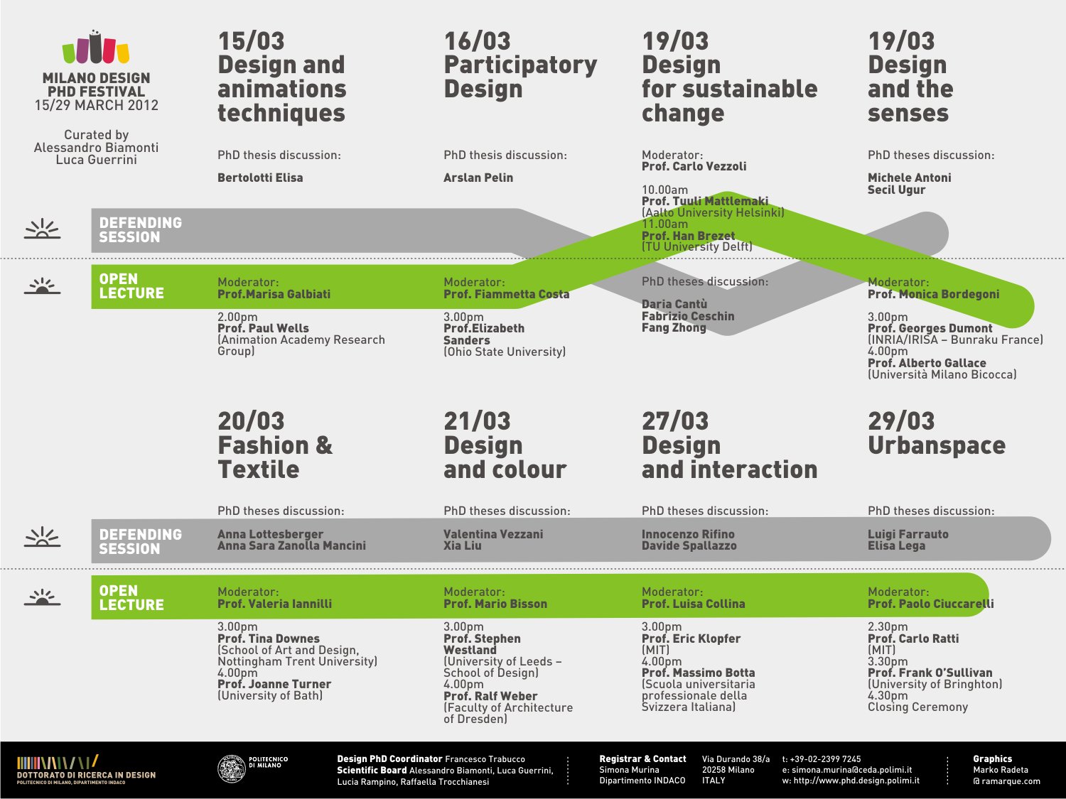 In occasione degli esami finali del XXIV Ciclo, il Dottorato in Design del Politecnico di Milano, organizza il Milano Design PhD Festival.